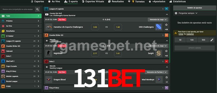 O 131bet oferece uma grande seleção de opções de apostas em e-sports com probabilidades competitivas